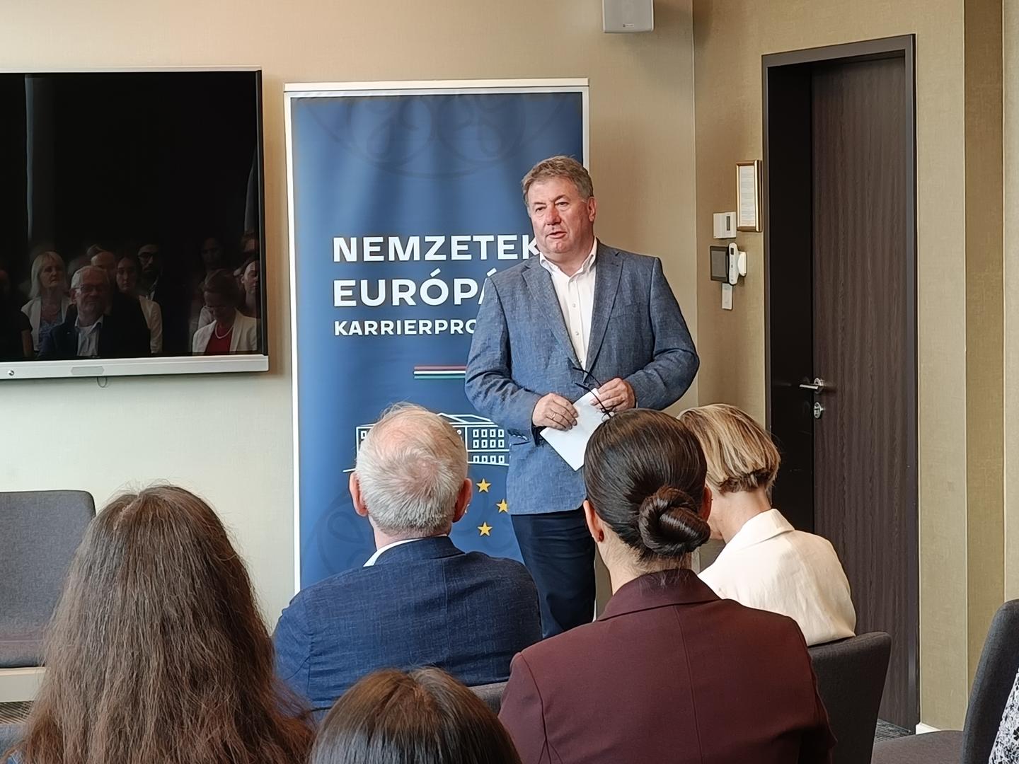 Prőhle Gergely, a Karrierprogram programigazgatója az esemény első napján, köszöntőjében emlékeztetett a kezdeményezés történetének kezdetére, ami a ’90-es évek elejére vezethető vissza. Mint fogalmazott, akkor a magyar fiatalok és szakemberek elkezdték komolyan venni az európai integráció kérdését. Hangsúlyozta, hogy az integráció intézményes előkészítése a parlamenti bizottságok szintjén indult, olyan kulcsszereplőkkel, mint Mádl Ferenc, Martonyi János és Gottfried Péter, akik megteremtették a jogi, a közgazdasági és a politikai alapokat. Elmondta: a program célja, hogy fiatalokat és egyetemistákat vonjon be, akik később európai pozíciókban képviselhetik Magyarország érdekeit. Prőhle Gergely beszédében kiemelte a globális verseny fontosságát, különösen Ázsiát és az USA-t tekintve, és hangsúlyozta az európai egység elérésének jelentőségét.
