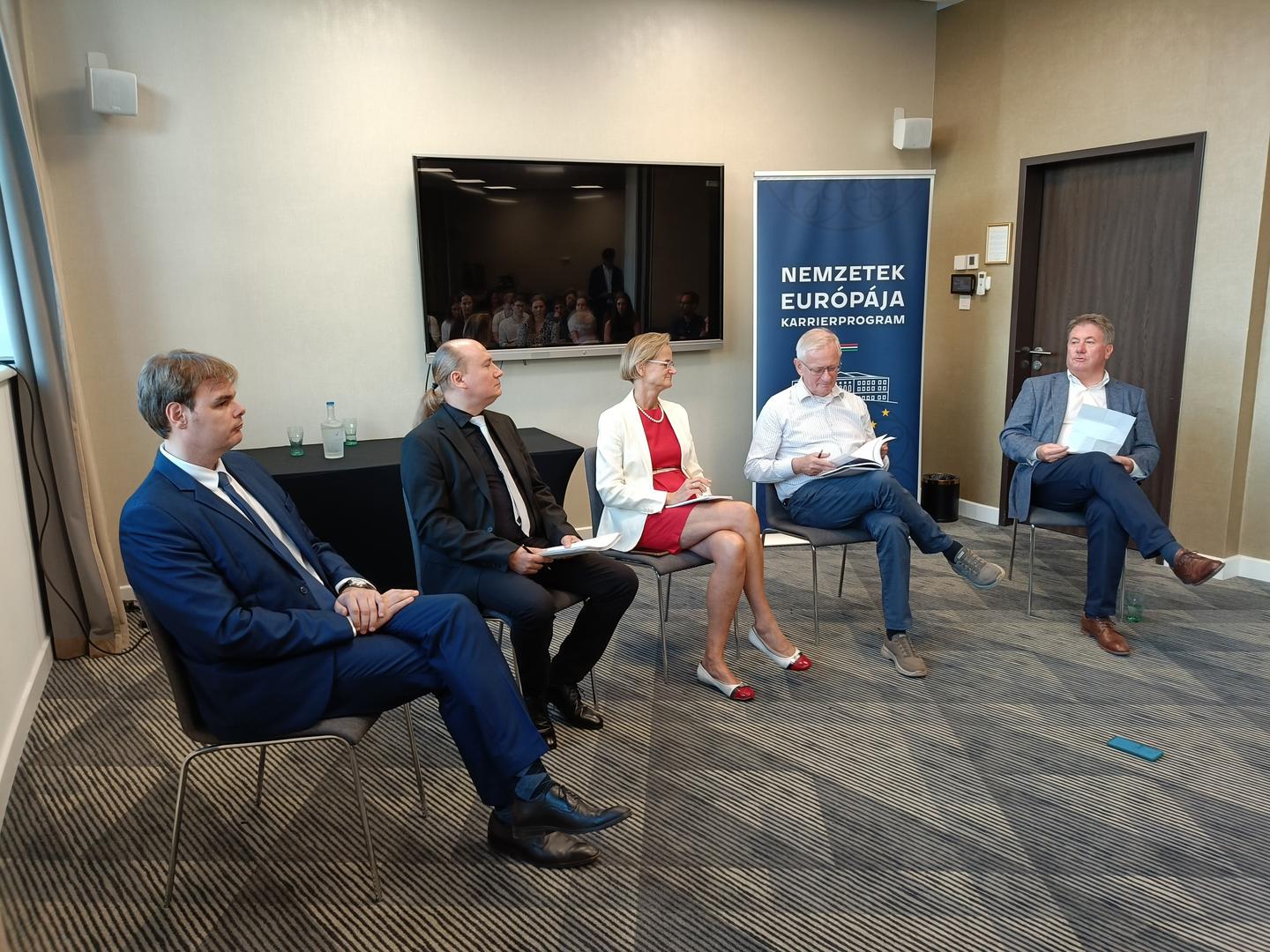 Bólya Boglárka, az Európai Uniós Ügyek Minisztériumának miniszteri biztosa zárszóként felelevenítette, hogy 2020-ban aktívan részt vett a Nemzetek Európája Karrierprogram indításában, amelyet szívügyének tekint, és figyelemmel kíséri fejlődését. Kiemelte: célja, hogy a résztvevők gyakorlatorientált tudást kapjanak, hangsúlyozva az EPSO-képzést, amely az egyik legfontosabb pillére a programnak; ennek keretében számos hallgató dolgozik Brüsszelben, EU-s intézményeknél és minisztériumokban.