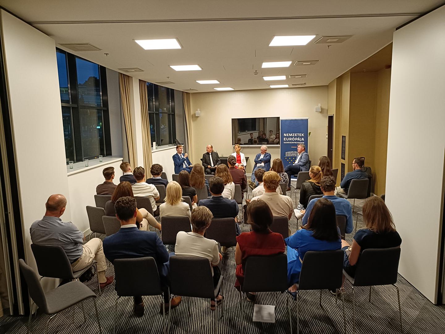 Az ezt követő kerekasztal-beszélgetésen – amelyen P. Szabó Sándor, az NKE Kína-tanulmányok Tanszékének tanszékvezető egyetemi docense, Csizmazia Gábor, az EJKK John Lukacs Intézet tudományos munkatársa, valamint Győri Enikő és Gottfried Péter vettek részt – szó volt Magyarország szerepéről a nagyhatalmak, különösen az USA, Kína és az EU közötti pozíciójában.