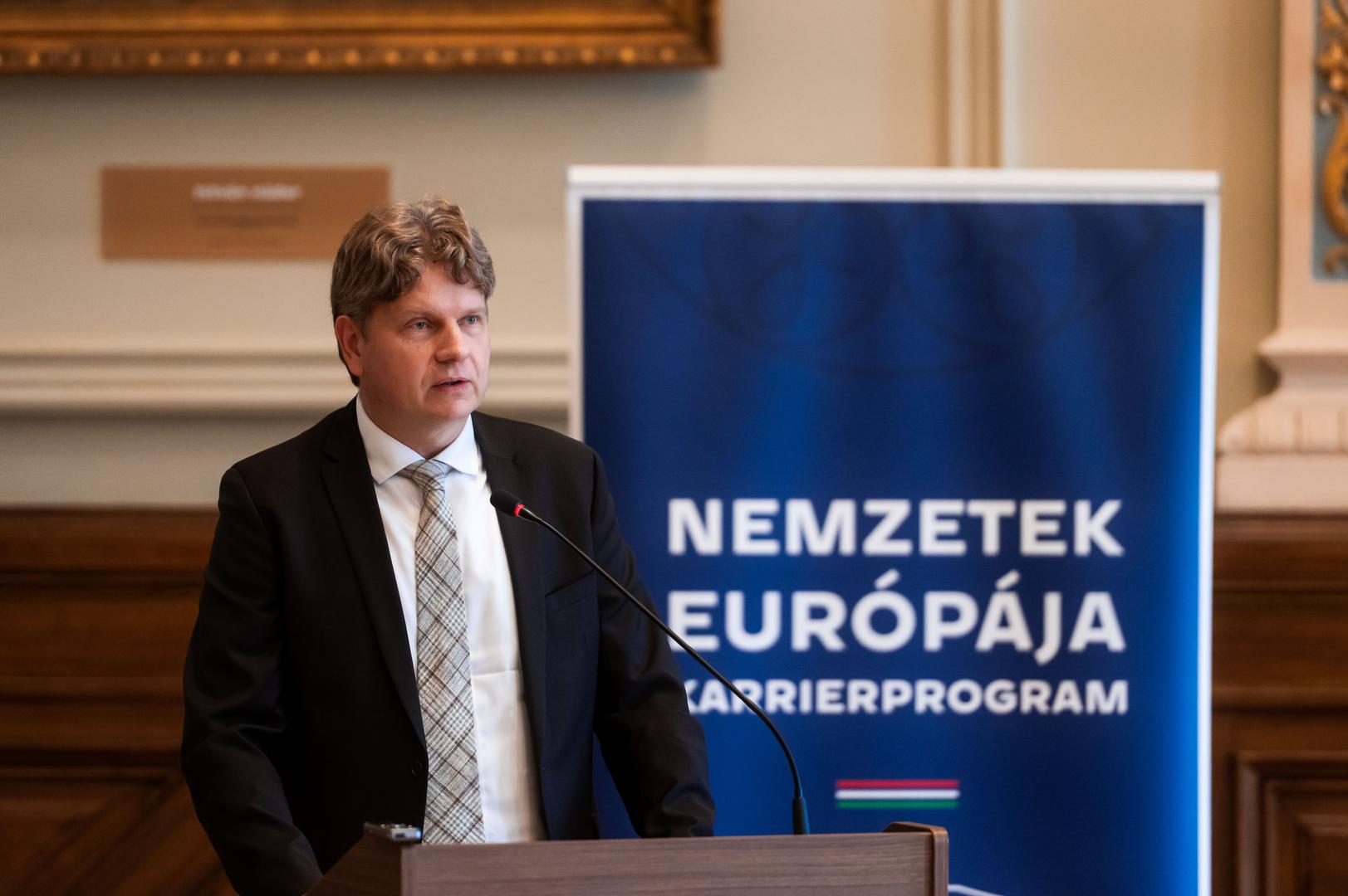 Az ünnepségen felszólalt Molnár Balázs, az EÜM Európa-politikáért felelős helyettes államtitkára is, aki köszöntőjében gratulált a hallgatóknak a sikeres felvételihez. Hangsúlyozta, a program népszerűségét mutatja, hogy immár a hatodik évfolyam indul el, és eddig minden évben többszörös túljelentkezés jellemezte a felvételit. „A program így valódi kiválóságképzéssé vált” – fogalmazott a helyettes államtitkár. Molnár Balázs megerősítette: a NEP nemcsak elméleti tudást nyújt, hanem gyakorlati felkészítést is az Európai Személyzeti Felvételi Hivatal (EPSO) versenyvizsgára és az európai közszolgálatra. Az oktatók között az unió működését belülről ismerő, elismert szakértők szerepelnek, akik betekintést adnak a brüsszeli érdekérvényesítés kulisszatitkaiba. A helyettes államtitkár hozzátette: a program sikerességét mutatja, hogy a végzett hallgatók közül sokan már Brüsszelben vagy a hazai közigazgatásban dolgoznak. Megemlítette azt is, hogy a Nemzetek Európája Karrierprogram elmúlt öt évfolyamának tapasztalatai igazolják, hogy a képzés hatékonyan járul hozzá a magyar érdekérvényesítéshez az Európai Unióban.
