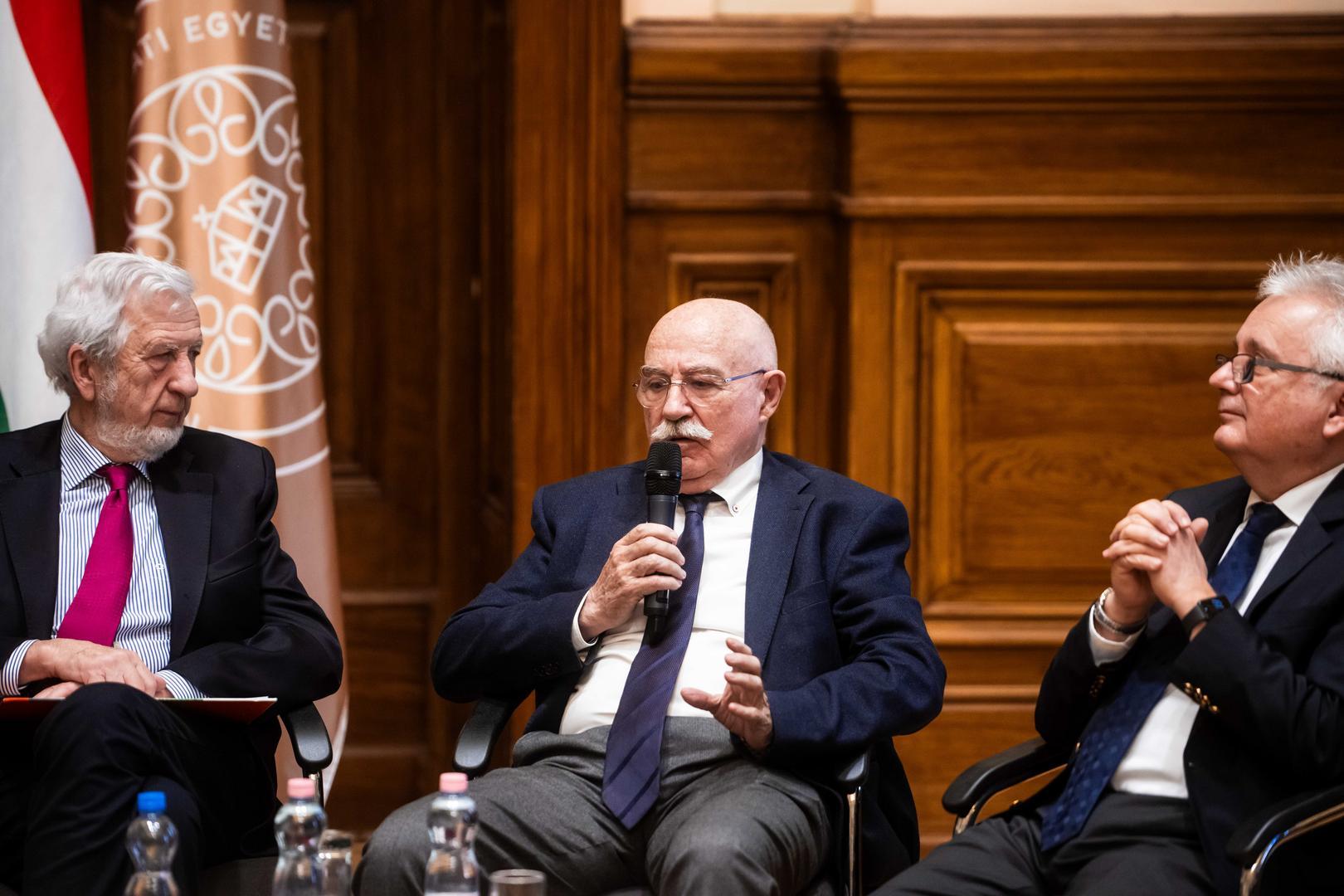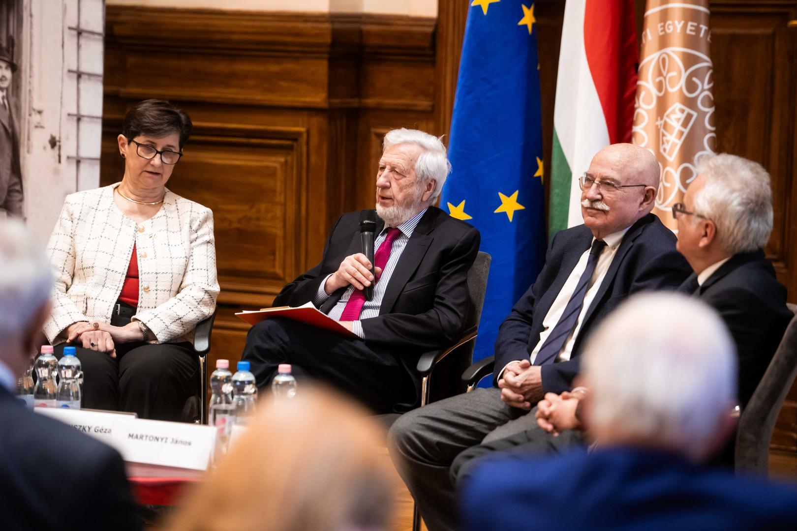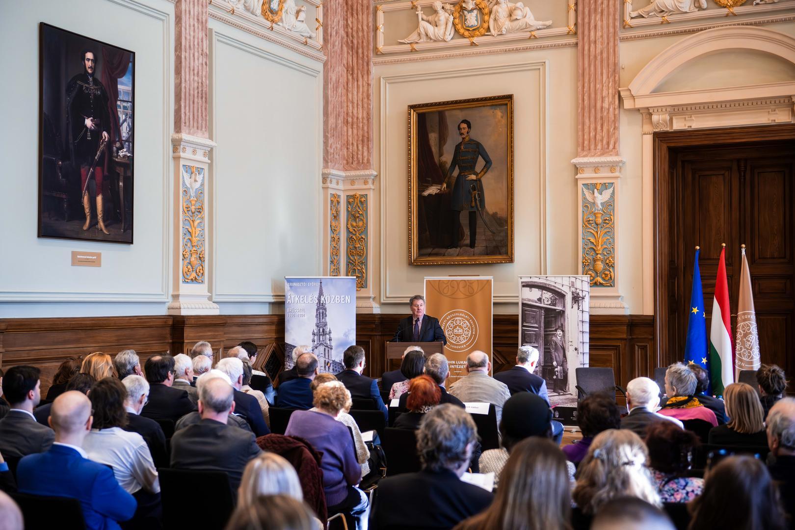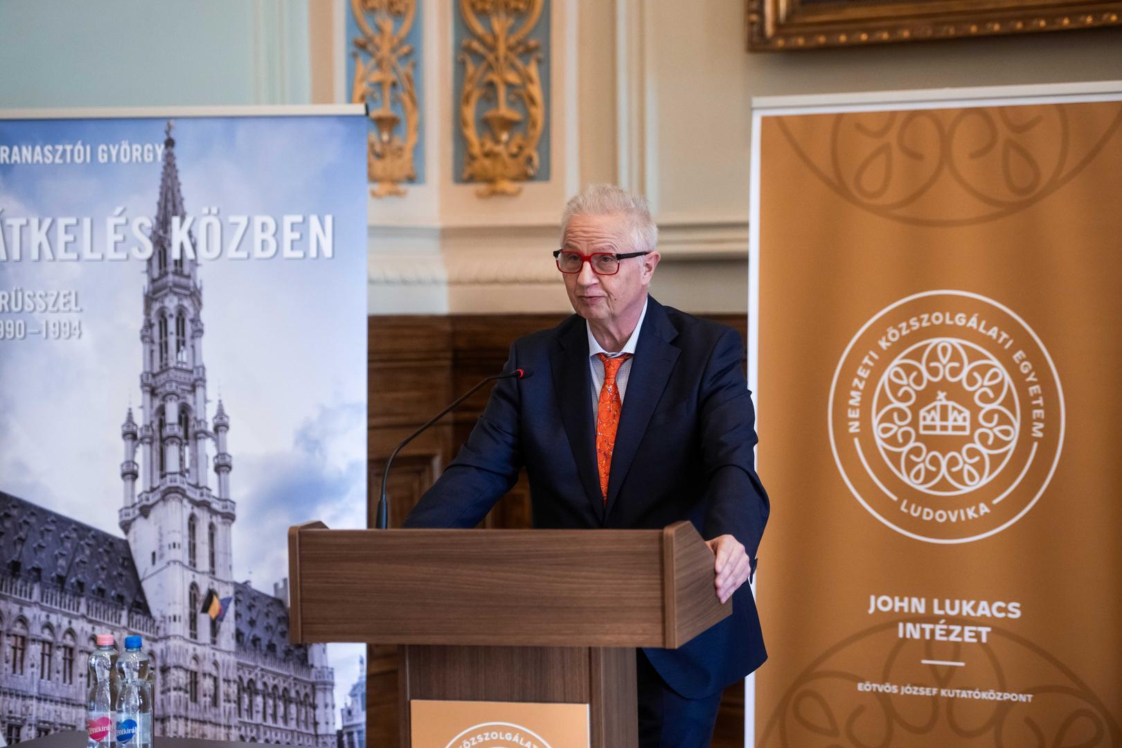 Granasztói György kései utóda voltam Belgiumban, ahol mindenki hálás szívvel emlékezett rá – idézte fel a korábbi diplomata alakját a konferencia bevezető előadásában Trócsányi László, a Károli Gáspár Református Egyetem rektora, korábbi miniszter, diplomata.