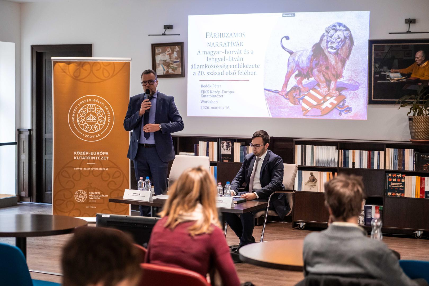 A Nemzeti Közszolgálati Egyetem (NKE) Eötvös József Kutatóközpont (EJKK) Közép-Európa Kutatóintézetének (KEKI) szervezésében zajlott le a Párhuzamos narratívák. A magyar–horvát és a lengyel–litván államközösség emlékezete a 20. század első felében című workshop március 16-án, a John Lukacs Társalgóban.